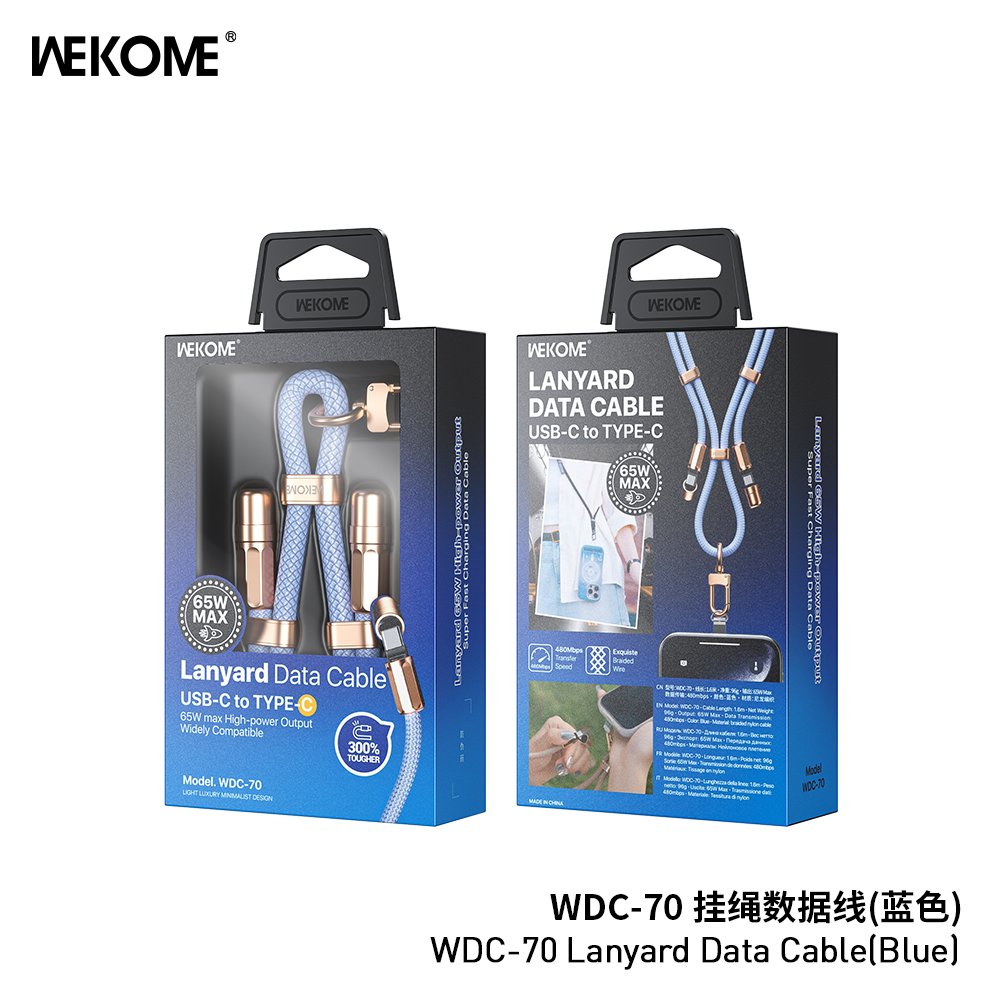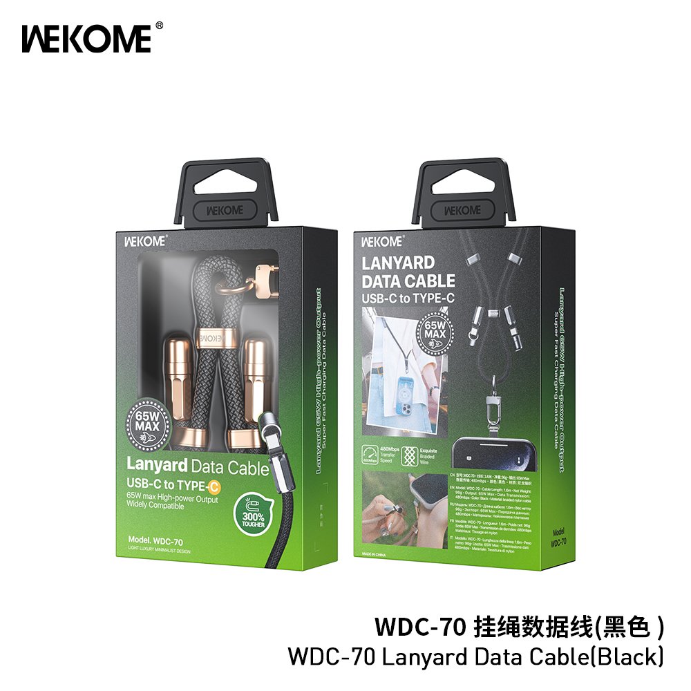 Never lose your charging cable again! The WDC-70 combines powerful 65W fast charging with the convenience of a wearable lanyard design.